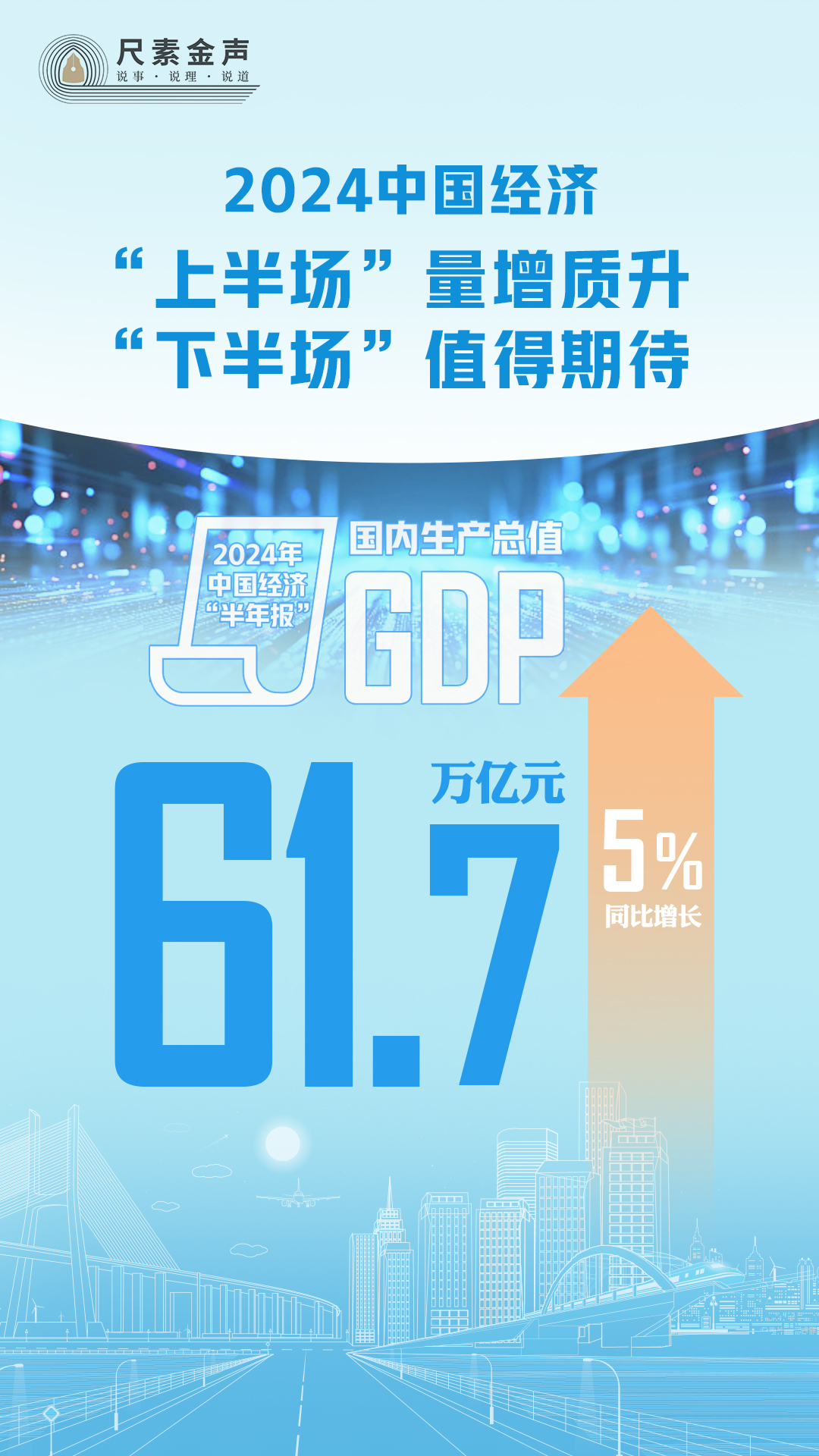 正在北京舉行的黨的二十屆三中全會,將重點(diǎn)研究進(jìn)一步全面深化改革、推進(jìn)中國式現(xiàn)代化。改革的“時(shí)代新篇”萬眾矚目,中國的發(fā)展也令人高度關(guān)注——同日,國家統(tǒng)計(jì)局發(fā)布2024年中國經(jīng)濟(jì)“半年報(bào)”:國內(nèi)生產(chǎn)總值(GDP)61.7萬億元,同比增長5%。結(jié)合二季度國內(nèi)外形勢,預(yù)計(jì)上半年中國經(jīng)濟(jì)增速仍將保持領(lǐng)先,仍是世界經(jīng)濟(jì)增長的重要引擎和穩(wěn)定力量。