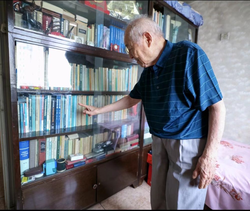 2024年7月9日方華燦介紹曾經(jīng)編寫的教材。新華社發(fā)