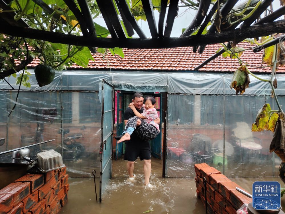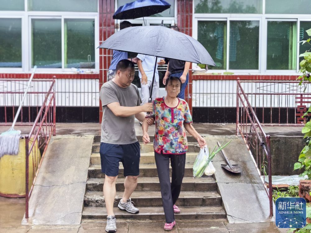 7月27日,在遼寧省鞍山市千山區(qū)老虎屯村,村干部在轉(zhuǎn)移受災(zāi)群眾?! ⌒氯A社發(fā)