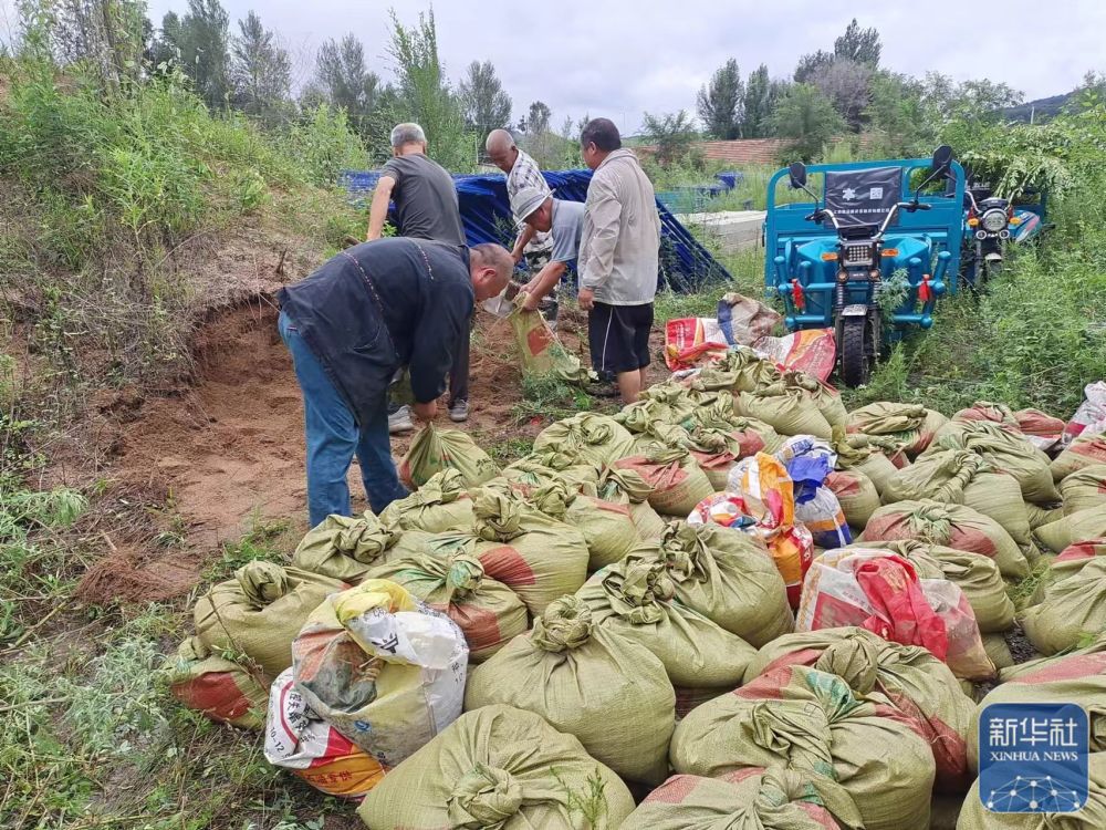 7月27日,遼寧省鐵嶺縣平頂堡鎮(zhèn)組織各村緊急裝運沙袋,全鎮(zhèn)共準(zhǔn)備5000個沙袋迎戰(zhàn)強降雨?! ⌒氯A社發(fā)