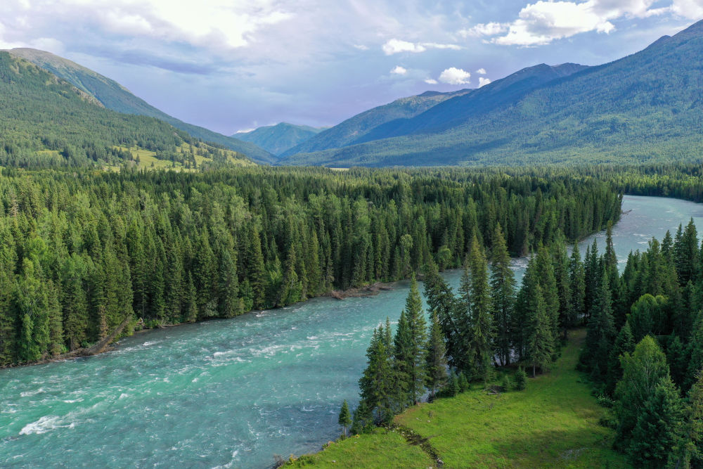 7月22日拍攝的新疆阿勒泰地區(qū)喀納斯景區(qū)(無人機照片)。