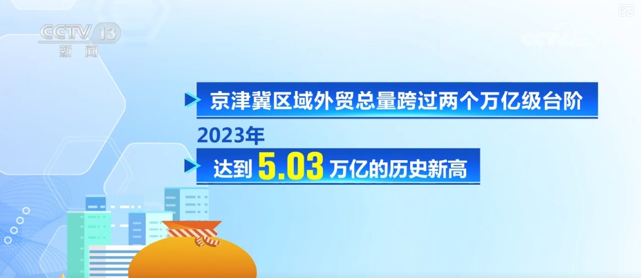 京津冀區(qū)域外貿(mào)總量跨過(guò)兩個(gè)萬(wàn)億級(jí)臺(tái)階,2023年達(dá)到5.03萬(wàn)億元的歷史新高。