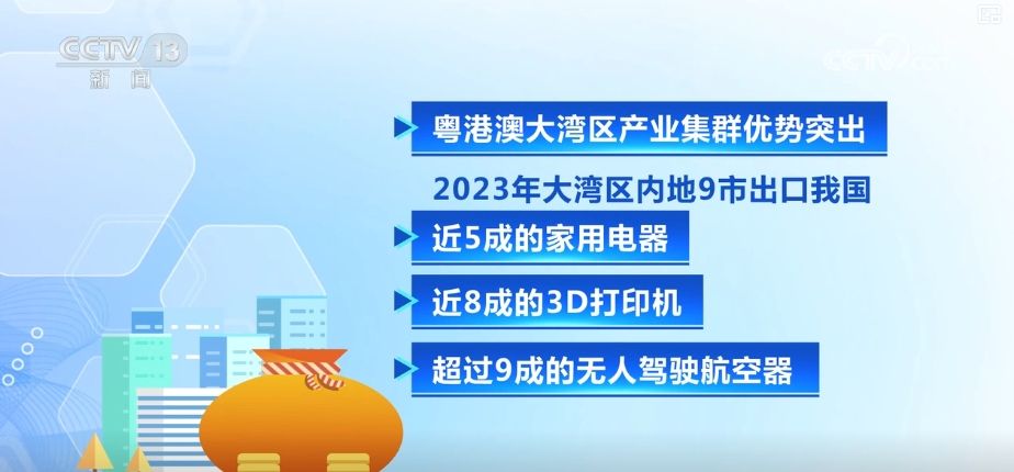 粵港澳大灣區(qū)產(chǎn)業(yè)集群優(yōu)勢(shì)突出,2023年,大灣區(qū)內(nèi)地9市出口了我國(guó)近五成的家用電器、近八成的3D打印機(jī)和超過(guò)九成的無(wú)人駕駛航空器。