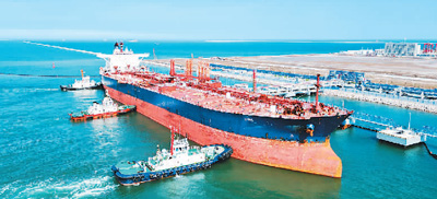 東營(yíng)海關(guān)數(shù)據(jù)顯示,今年上半年,山東省東營(yíng)市東營(yíng)港進(jìn)出境貨運(yùn)量807.3萬噸、貨值344.7億元,同比分別增長(zhǎng)492.2%、556.5%。圖為7月30日,東營(yíng)港10萬噸級(jí)碼頭,進(jìn)口貨輪經(jīng)海關(guān)監(jiān)管后,駛出碼頭。