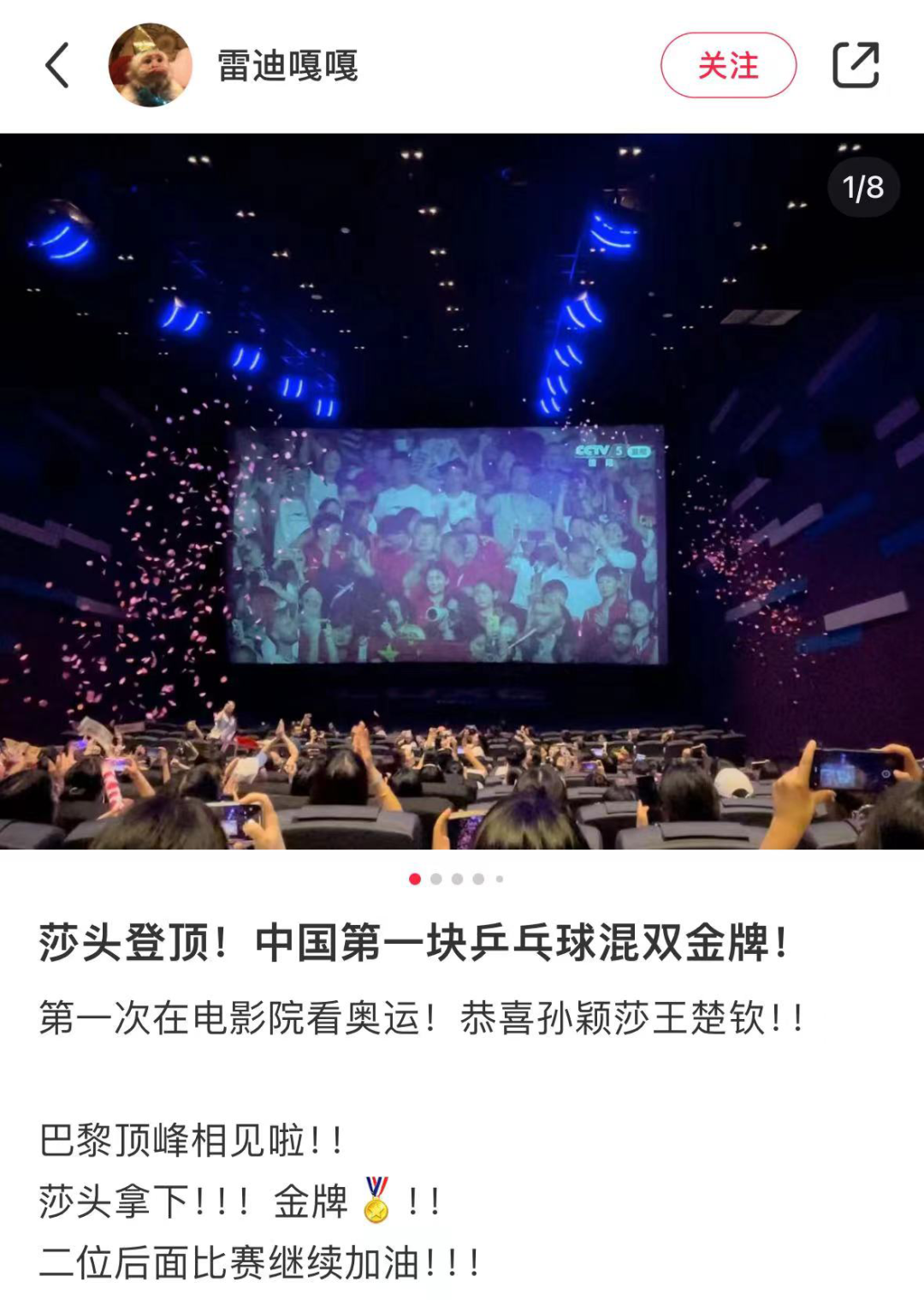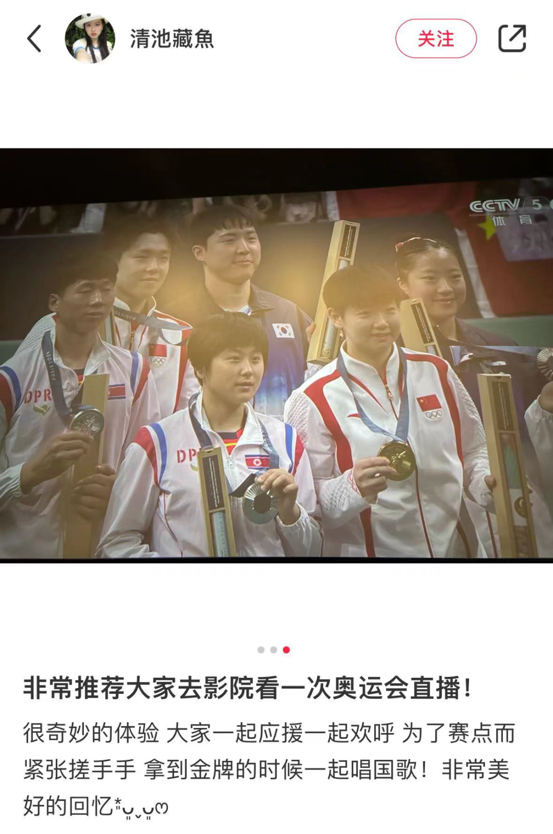 “一定要去看電影院看一次奧運會直播!”