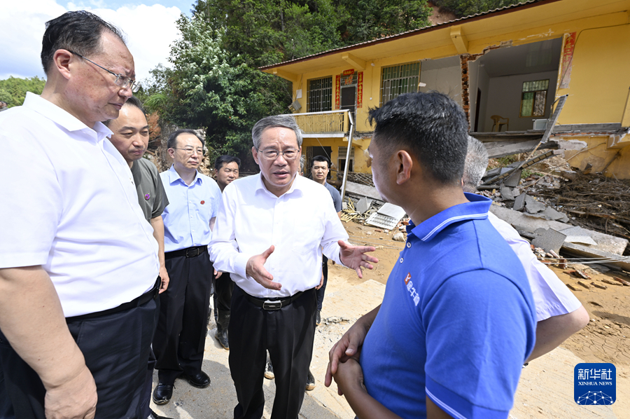 8月1日,中共中央政治局常委、國(guó)務(wù)院總理李強(qiáng)在湖南郴州看望慰問受災(zāi)群眾,檢查指導(dǎo)防汛工作。這是李強(qiáng)在資興市州門司鎮(zhèn)燕窩村實(shí)地察看災(zāi)情,走訪受災(zāi)村民。新華社記者 岳月偉 攝