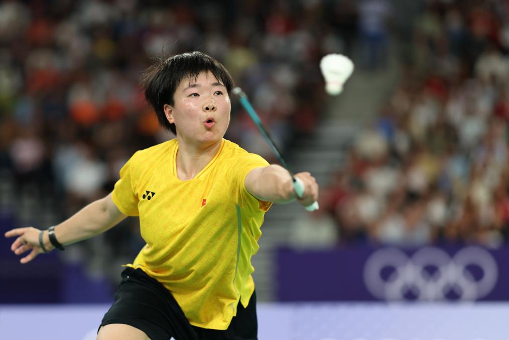 8月4日,中國選手何冰嬌在比賽中。新華社記者 賈浩成 攝
