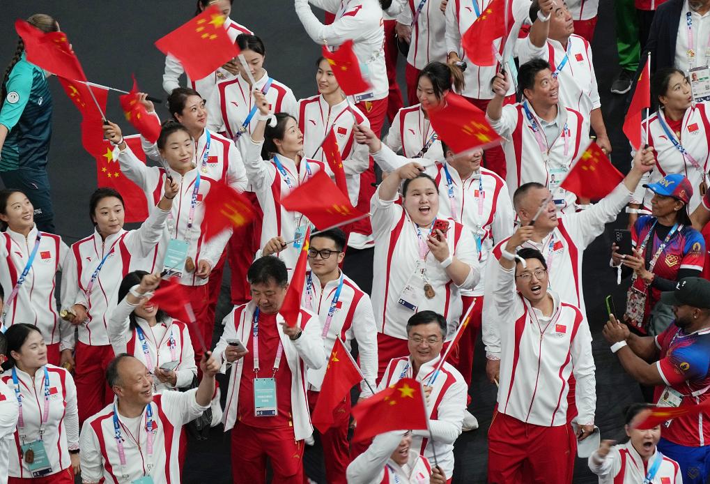 8月11日,中國體育代表團在閉幕式上入場。新華社記者 鄭煥松 攝