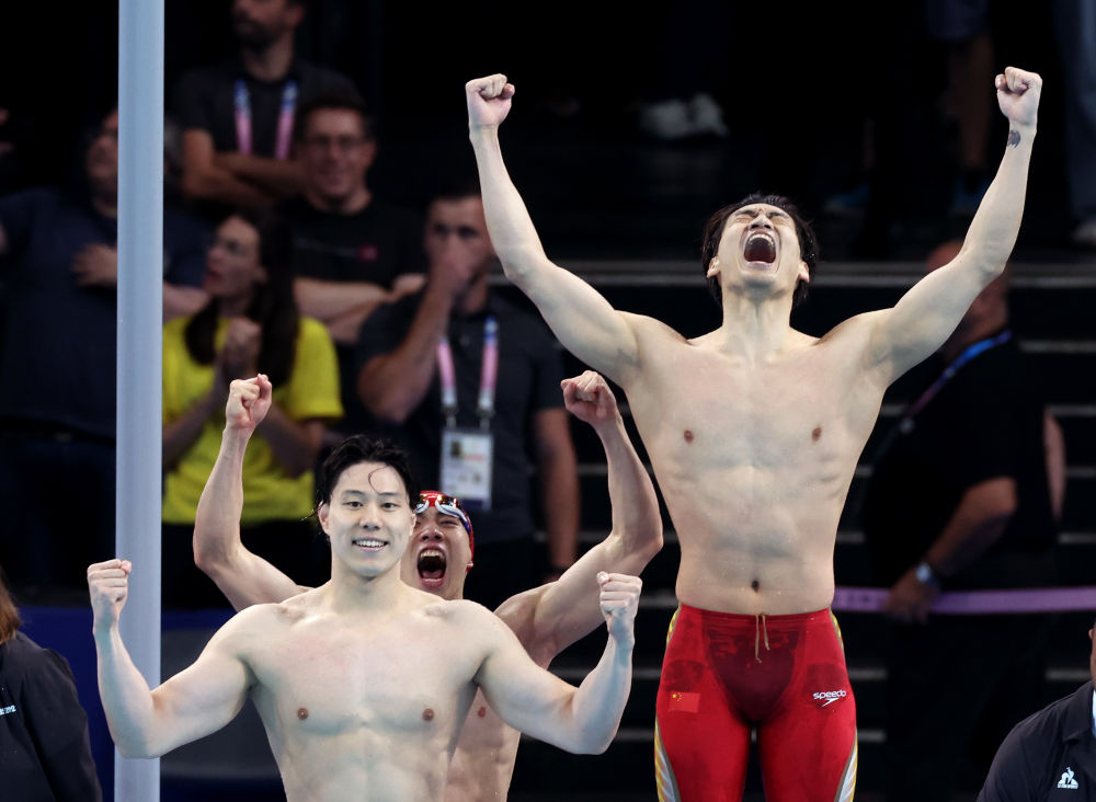 巴黎奧運會游泳賽場最后一個比賽日,男子4X100米混合泳接力決賽,當(dāng)潘展樂完成反超,幫助中國隊力壓壟斷該項目40年的美國隊和占盡主場優(yōu)勢的法國隊,以3分27秒46的成績奪冠時,現(xiàn)場的歡呼聲達到了頂峰。