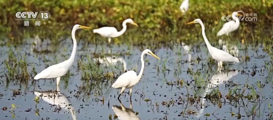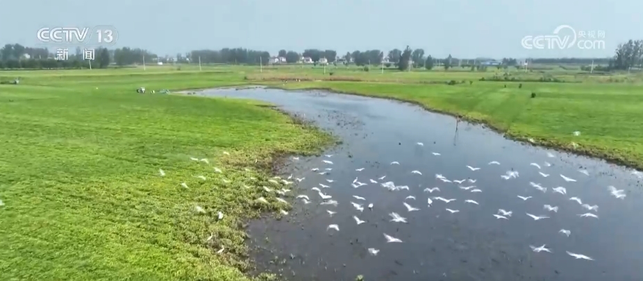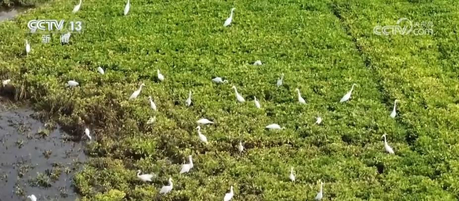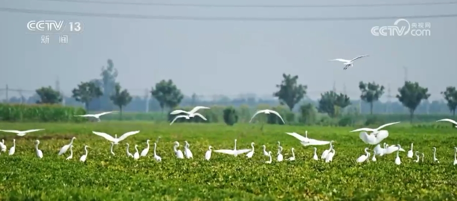 在河南周口市淮陽區(qū),由于近期降雨頻繁,當地古運河不少低洼地帶變成灘涂濕地,多群白鷺匯聚于此,棲息覓食。