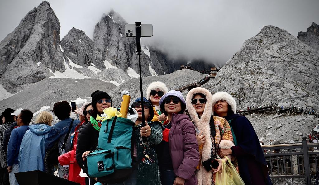 6月20日,越南游客在麗江玉龍雪山拍照。新華社記者王賢思 攝