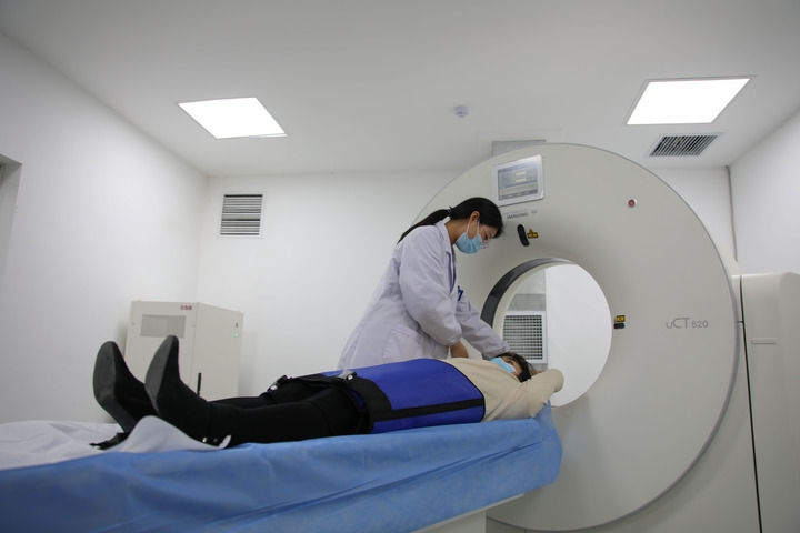 2023年3月2日,安徽省合肥市包河區(qū)煙墩街道社區(qū)衛(wèi)生服務(wù)中心的醫(yī)護(hù)人員為患者進(jìn)行CT檢查。 新華社記者 曹力 攝