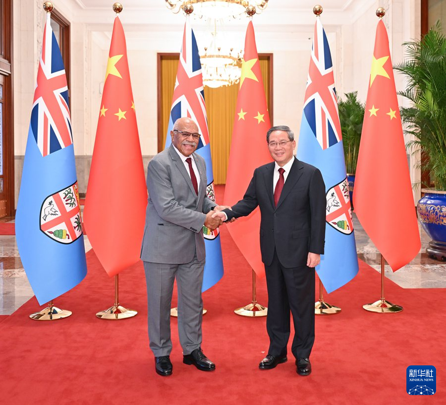 國務(wù)院總理李強(qiáng)8月18日下午在北京人民大會(huì)堂同來華進(jìn)行正式訪問的斐濟(jì)總理蘭布卡舉行會(huì)談。