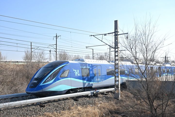 2024年3月21日,我國(guó)首列氫能源市域列車(chē)在位于長(zhǎng)春的中車(chē)長(zhǎng)客試驗(yàn)線(xiàn)進(jìn)行運(yùn)行試驗(yàn)。新華社發(fā)(中車(chē)長(zhǎng)客股份公司提供)