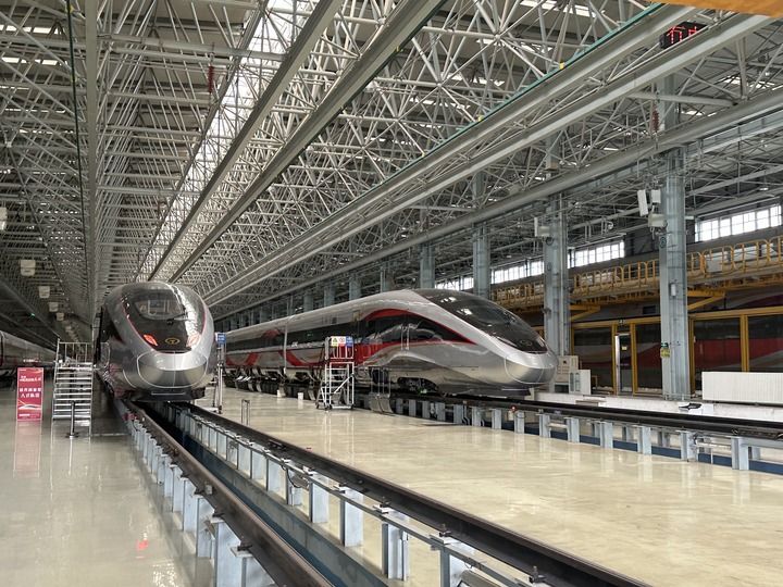 這是在中車(chē)長(zhǎng)客國(guó)鐵事業(yè)部制造中心拍攝的復(fù)興號(hào)智能動(dòng)車(chē)組(2024年7月17日攝)。新華社發(fā)