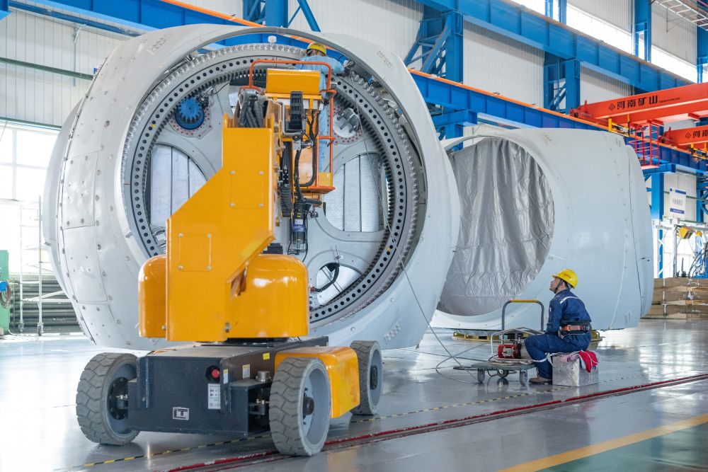 2024年4月28日,工人在位于黑龍江省齊齊哈爾市的中國(guó)一重集團(tuán)有限公司風(fēng)電設(shè)備裝配車(chē)間加工風(fēng)電輪轂。新華社記者 謝劍飛 攝