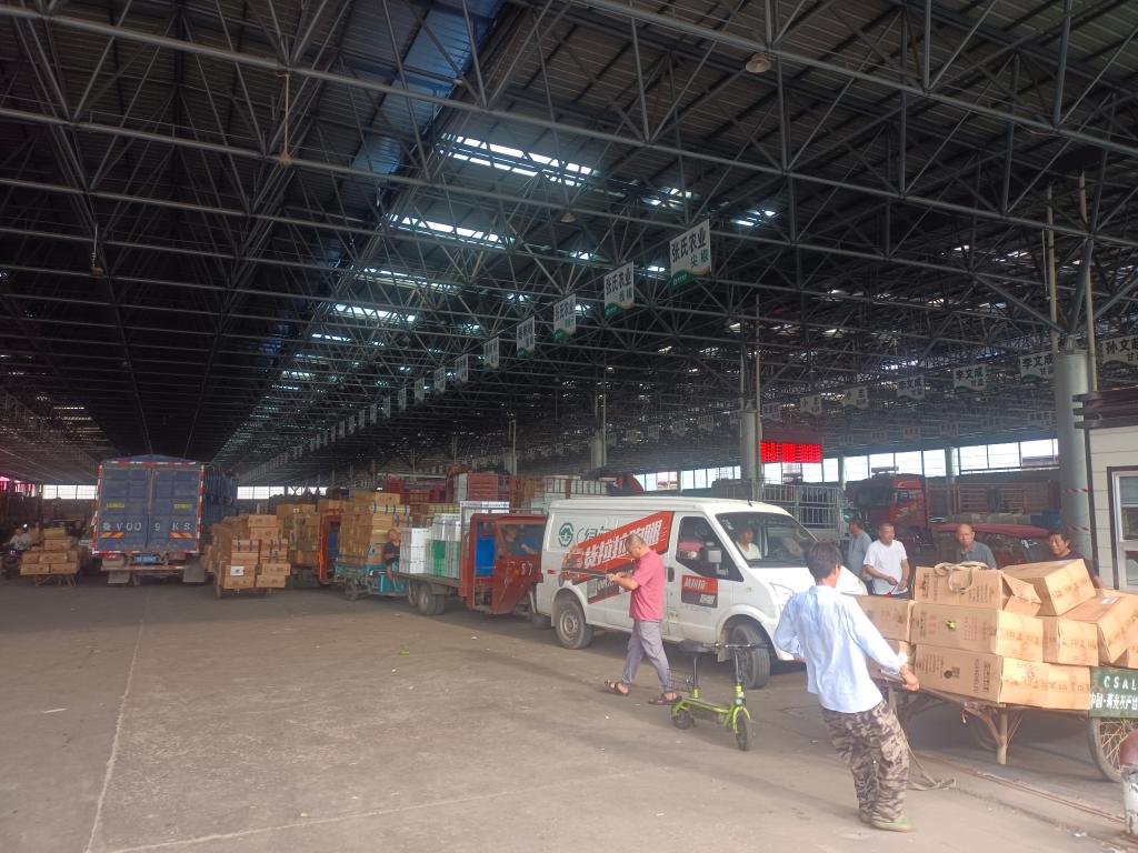 “為了應(yīng)對高溫,我們加快了進(jìn)貨、出貨節(jié)奏,縮短蔬菜在市場停留時間。同時,為平抑菜價,物流園在加強產(chǎn)銷銜接、蔬菜集散等方面持續(xù)發(fā)力,通過周邊調(diào)運、增加耐儲蔬菜等方式,讓各地市民的‘菜籃子’拎得更穩(wěn)?!眽酃馐猩虅?wù)局黨組成員王海濤說。