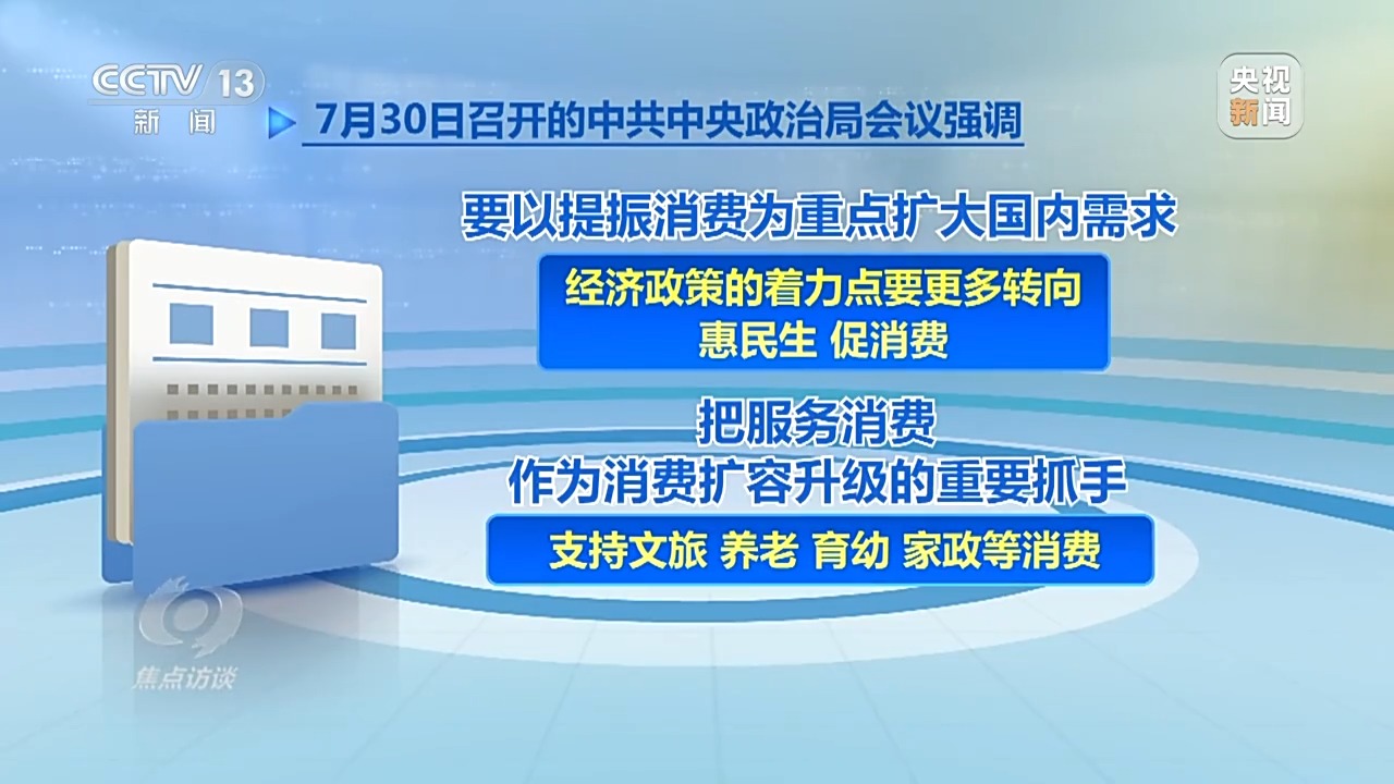 服務(wù)消費(fèi)是釋放消費(fèi)潛力的重要力量。7月30日召開的中共中央政治局會議強(qiáng)調(diào),“要以提振消費(fèi)為重點(diǎn)擴(kuò)大國內(nèi)需求,經(jīng)濟(jì)政策的著力點(diǎn)要更多轉(zhuǎn)向惠民生、促消費(fèi),把服務(wù)消費(fèi)作為消費(fèi)擴(kuò)容升級的重要抓手,支持文旅、養(yǎng)老、育幼、家政等消費(fèi)。”國務(wù)院于8月3日印發(fā)《關(guān)于促進(jìn)服務(wù)消費(fèi)高質(zhì)量發(fā)展的意見》,提出“著力提升服務(wù)品質(zhì)、豐富消費(fèi)場景、優(yōu)化消費(fèi)環(huán)境,以創(chuàng)新激發(fā)服務(wù)消費(fèi)內(nèi)生動能,培育服務(wù)消費(fèi)新增長點(diǎn)”。這是我國首次專門就服務(wù)消費(fèi)發(fā)展作出系統(tǒng)全面部署的政策文件。