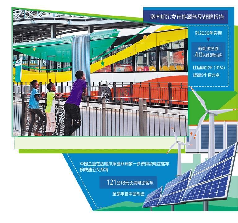中塞新能源產(chǎn)業(yè)合作持續(xù)深化。中國(guó)企業(yè)在達(dá)喀爾承建了非洲第一條使用純電動(dòng)客車的快速公交系統(tǒng)(BRT),121臺(tái)18米長(zhǎng)純電動(dòng)客車全部來(lái)自中國(guó)制造。由中國(guó)企業(yè)承建的20個(gè)車站和維保基地也都設(shè)置有中國(guó)制造的光伏系統(tǒng)。