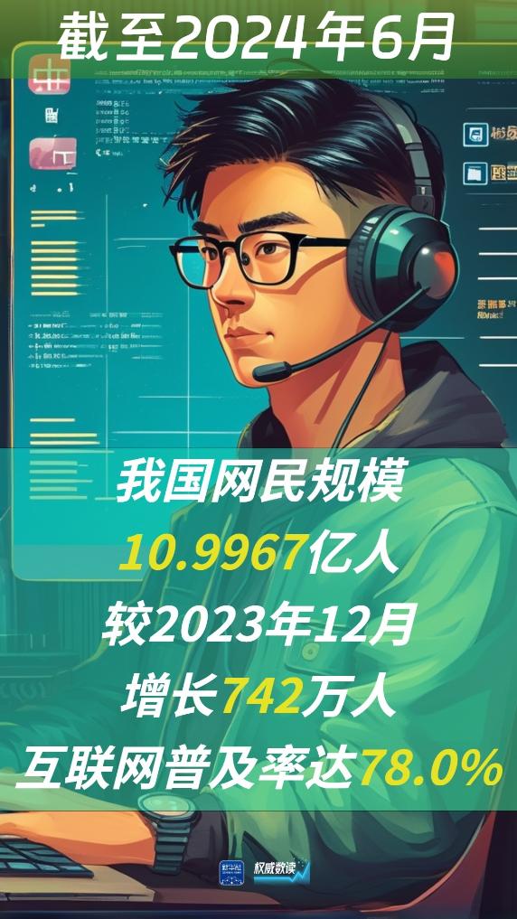 8月29日,中國互聯(lián)網(wǎng)絡信息中心(CNNIC)發(fā)布第54次《中國互聯(lián)網(wǎng)絡發(fā)展狀況統(tǒng)計報告》。報告顯示,截至2024年6月,我國網(wǎng)民規(guī)模近11億人(10.9967億人),較2023年12月增長742萬人,互聯(lián)網(wǎng)普及率達78.0%。