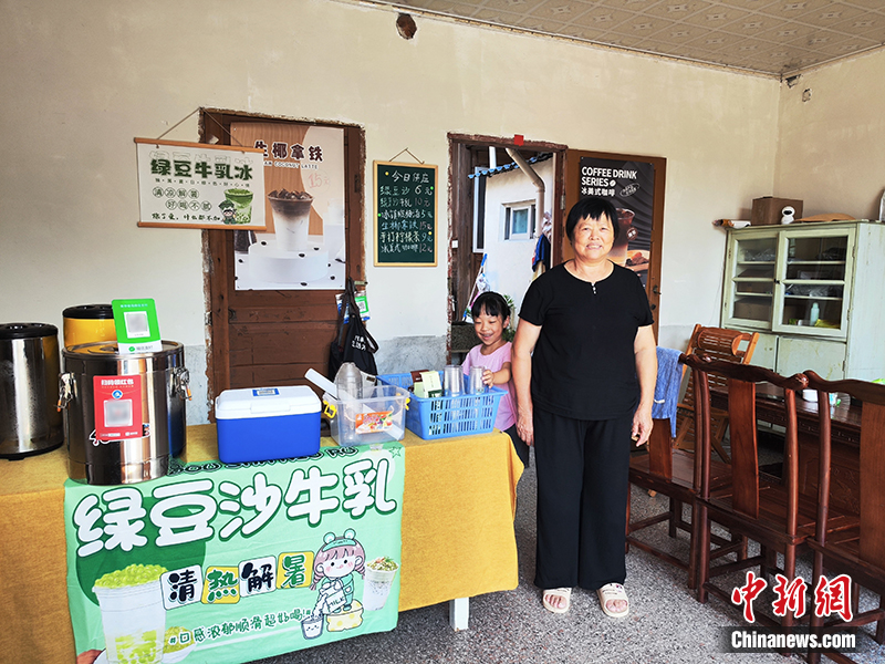 南山鎮(zhèn)中復(fù)村,村民上官大姐和她經(jīng)營的冷飲店。劉越 攝