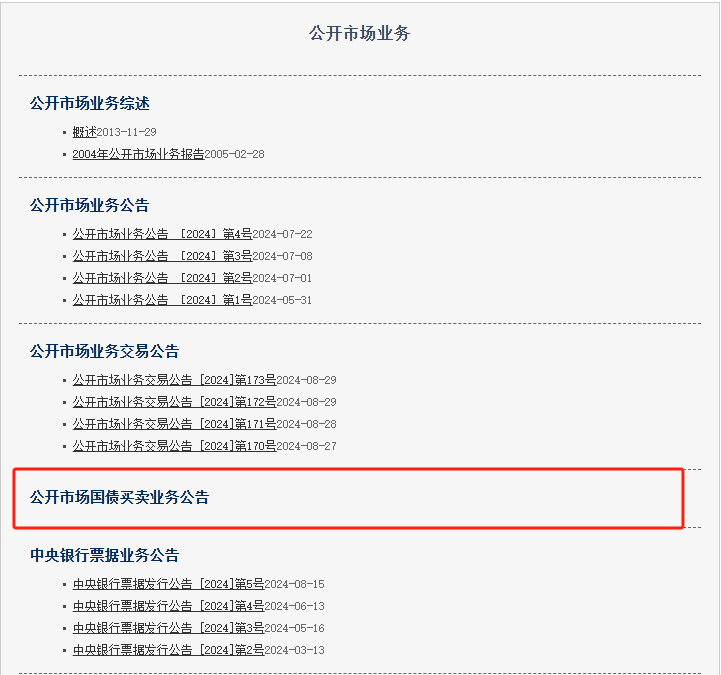 8月28日,中國人民銀行官網(wǎng)“公開市場業(yè)務”專題頁面上線“公開市場國債買賣業(yè)務公告”欄目。此次在官網(wǎng)欄目更新,顯示央行已為公開市場國債買賣業(yè)務做好準備,再次釋放其將在公開市場開展國債買賣操作的信號。