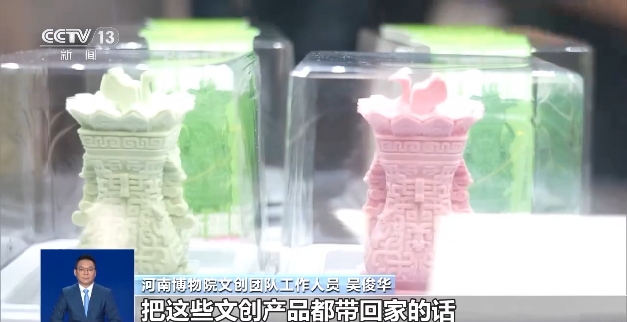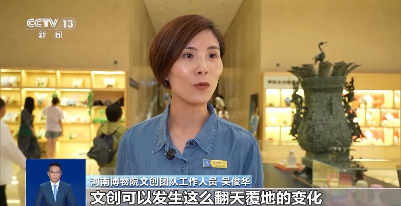 河南博物院文創(chuàng)團(tuán)隊(duì)工作人員 吳俊華:大家來(lái)參觀博物館從被動(dòng)灌輸,轉(zhuǎn)化為主動(dòng)探索、去感受考古挖掘的樂(lè)趣以及文物的魅力。文創(chuàng)可以發(fā)生這么翻天覆地的變化,文創(chuàng)可以融入大家的衣食住行中。