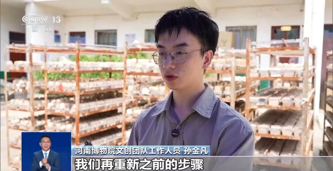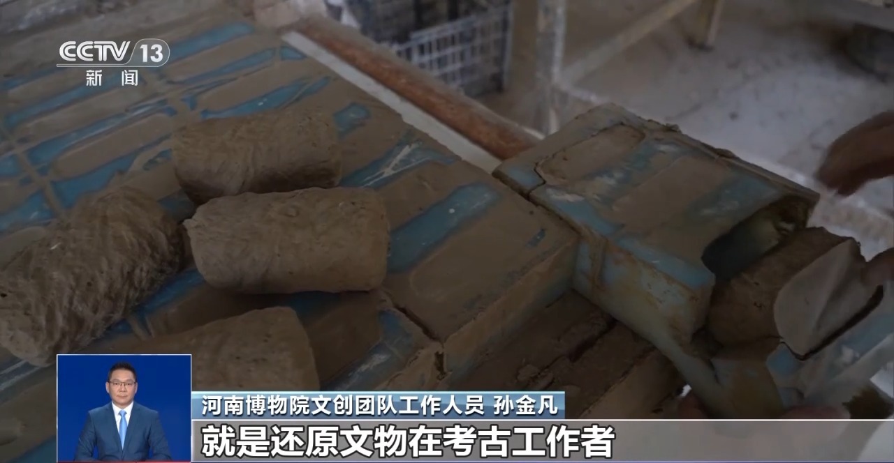 河南博物院文創(chuàng)團(tuán)隊(duì)工作人員 孫金凡:和泥巴、調(diào)配方、做試驗(yàn),每天都是灰頭土臉的,就是還原文物在考古工作者出土?xí)r的那一瞬間。同學(xué)就會(huì)問(wèn),還在村里面呢?我說(shuō)對(duì),還在那和泥巴。
