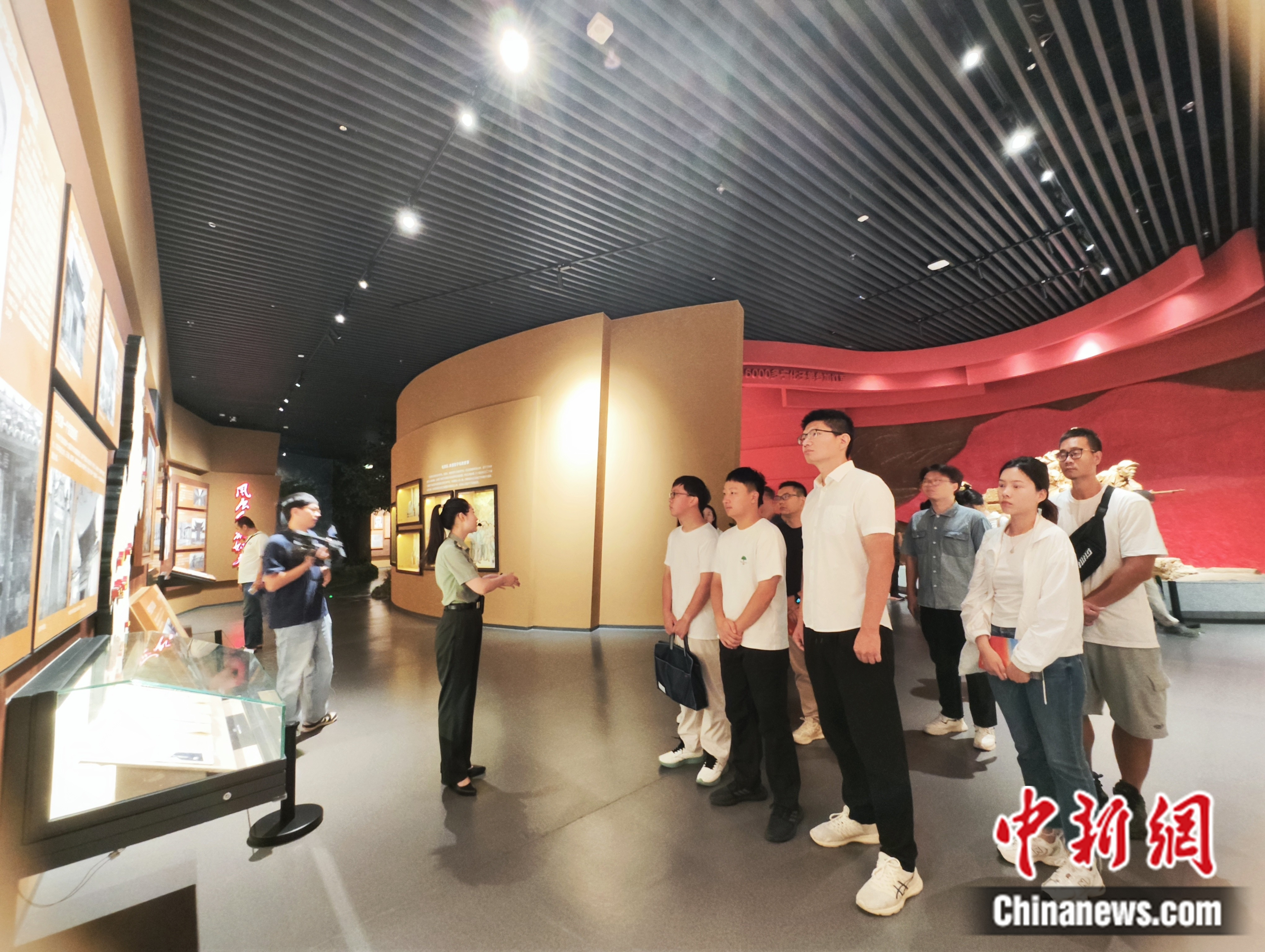 寧化縣長征精神教育基地內(nèi),講解員向采訪調(diào)研團講述歷史。劉越 攝