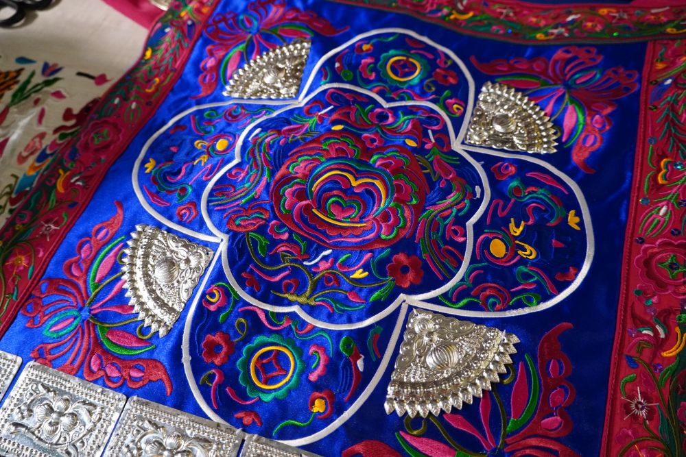 另一珍品是有“穿在身上的侗族文明史”之稱的侗族刺繡。在永濟(jì)橋上,31歲的覃桂珍正和兩位繡娘為手中的侗繡新作忙碌。作為集紡織、印染、剪紙、刺繡于一體的傳統(tǒng)工藝,侗繡技藝延綿千年,已被列入國家級非物質(zhì)文化遺產(chǎn)名錄及國家傳統(tǒng)工藝振興目錄。