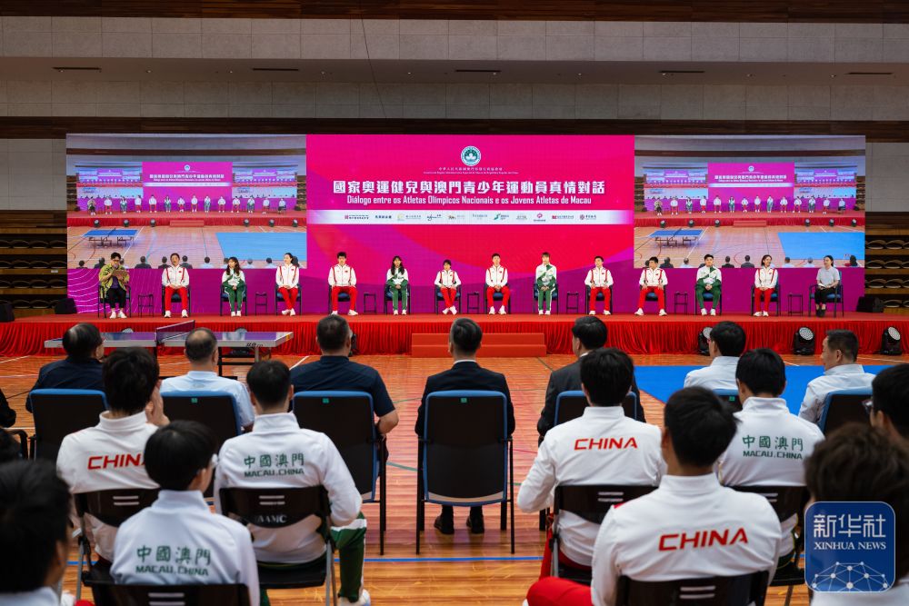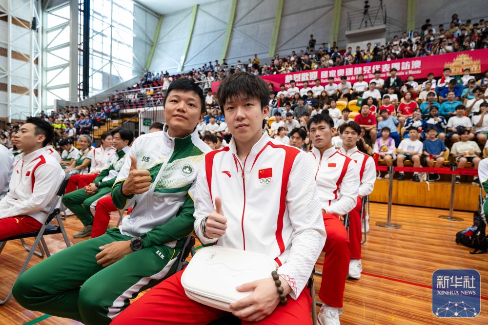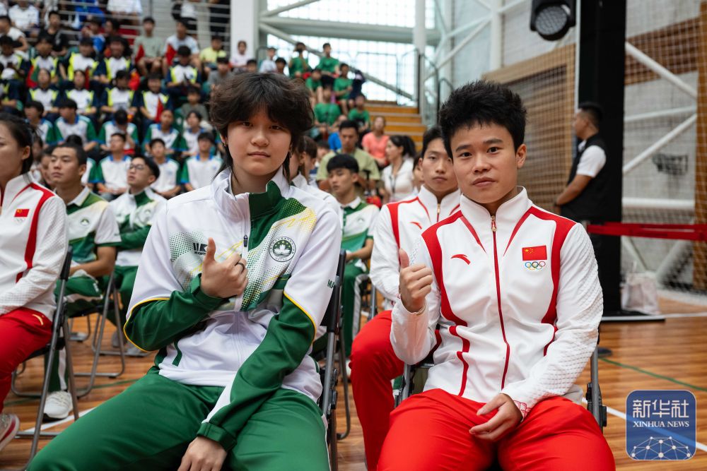 9月1日,內(nèi)地奧運(yùn)健兒代表團(tuán)在澳門奧林匹克體育中心室內(nèi)體育館與澳門青少年運(yùn)動員進(jìn)行互動交流。