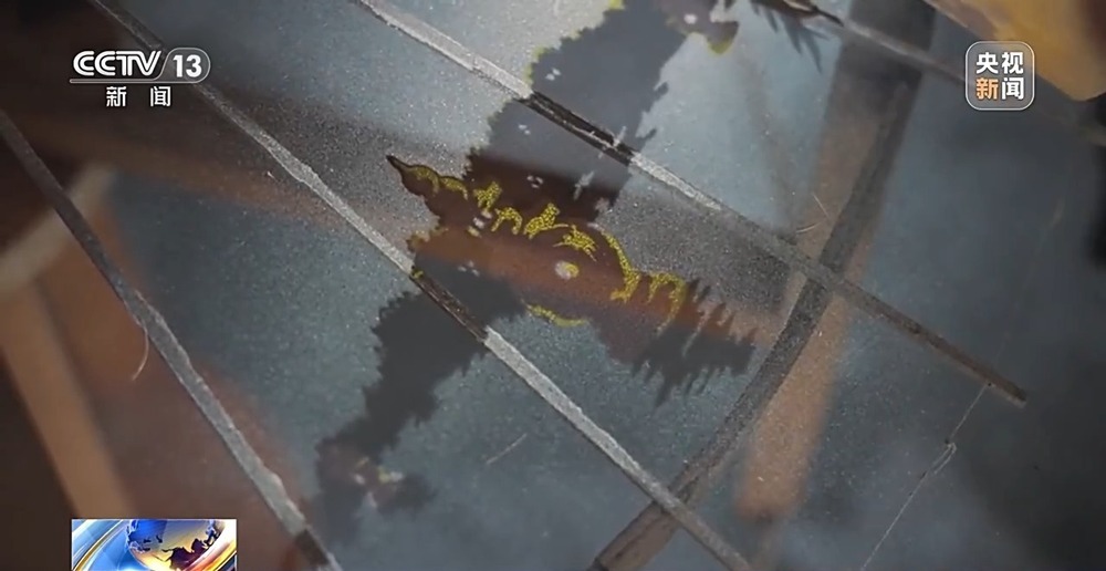 一個小時后,一幅由刷花工藝?yán)L成的三潭印月圖案躍然傘面之上,西湖風(fēng)景與杭州絲綢通過刷花這一手工技藝,完美地融合在了一起。