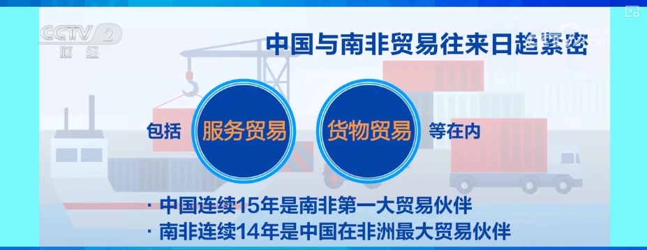 據(jù)統(tǒng)計,包括服務(wù)貿(mào)易、貨物貿(mào)易等在內(nèi),中國連續(xù)15年是南非第一大貿(mào)易伙伴,而南非則連續(xù)14年是中國在非洲最大貿(mào)易伙伴。2024年前5個月,雙邊貿(mào)易額達235億美元。其中,南非對華出口153億美元,同比增長近14%。