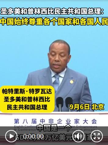 圣多美和普林西比民主共和國總理帕特里斯·特羅瓦達(dá)6日在第八屆中非企業(yè)家大會開幕式上說,中國是個大國,而圣多美和普林西比人口只有23萬?!拔医裉煊袡C會在這里發(fā)言,體現(xiàn)了中國始終尊重各個國家和各國人民,共建、共享繁榮和平世界,共筑中非命運共同體?!?/p>