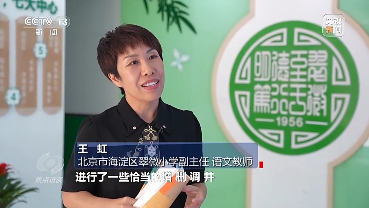 北京市海淀區(qū)翠微小學(xué)副主任、語文教師 王虹:拿到教材,我們心里特別踏實(shí),我們發(fā)現(xiàn)這個(gè)教材進(jìn)行了一些恰當(dāng)?shù)脑?、刪、調(diào)、并。一年級(jí)上學(xué)期識(shí)字量上原來是300個(gè),現(xiàn)在280個(gè),還有一些對(duì)學(xué)生理解起來有一些難度的課文,也進(jìn)行了刪減或者調(diào)整。