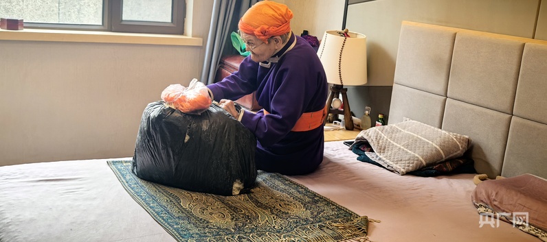 都貴瑪額吉收拾冬天要穿的棉袍(央廣網(wǎng)見(jiàn)習(xí)記者 邵玉琴 攝)