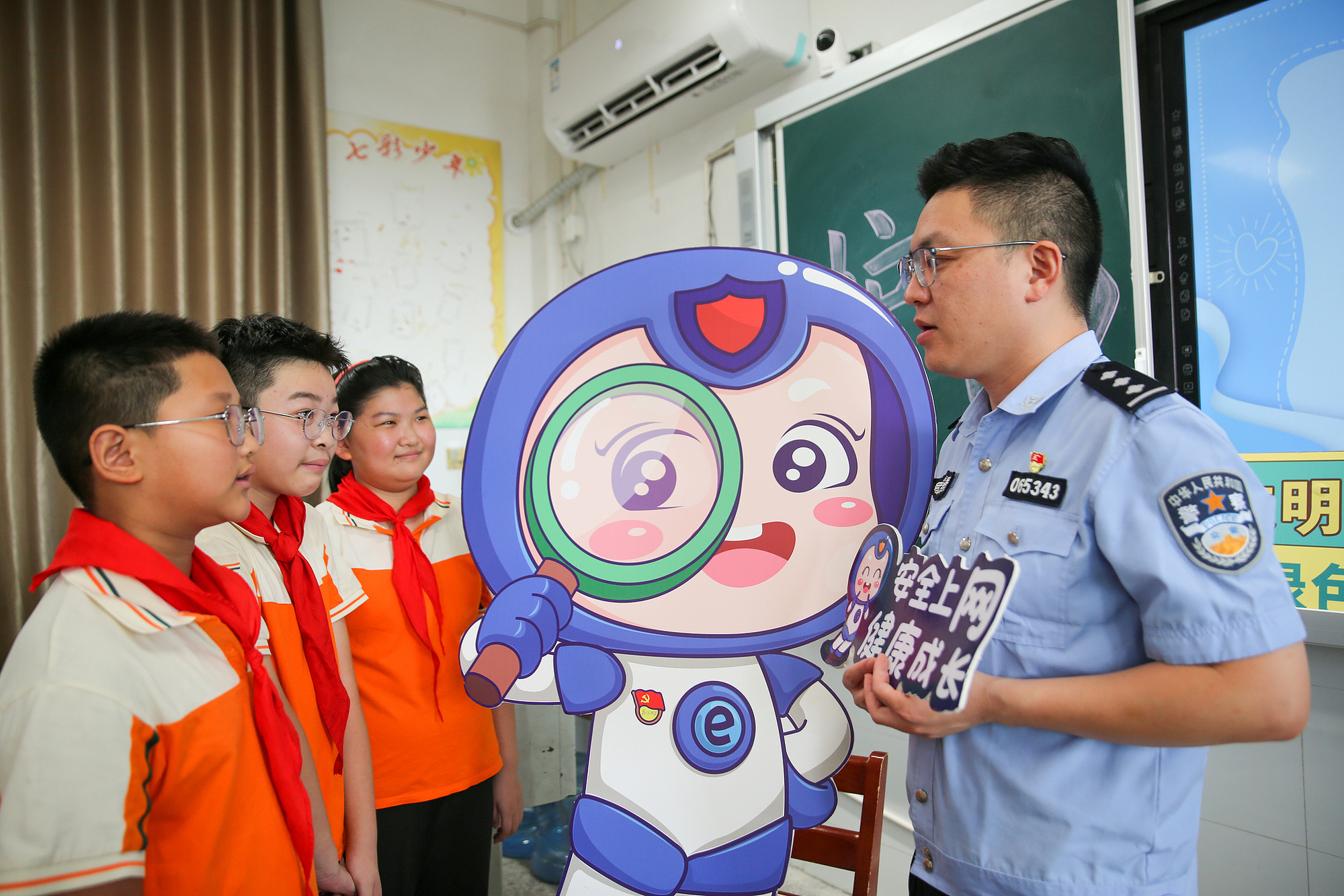 民警向學生普及安全上網(wǎng)、文明上網(wǎng)等知識