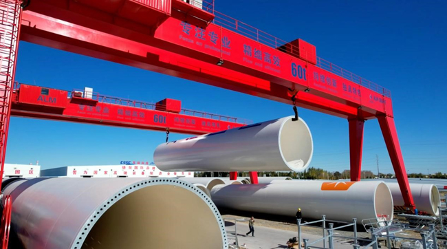 蒙東(通遼)風(fēng)電裝備制造產(chǎn)業(yè)基地內(nèi),一排排風(fēng)葉和塔筒即將運(yùn)往全國(guó)各地。林林?jǐn)z