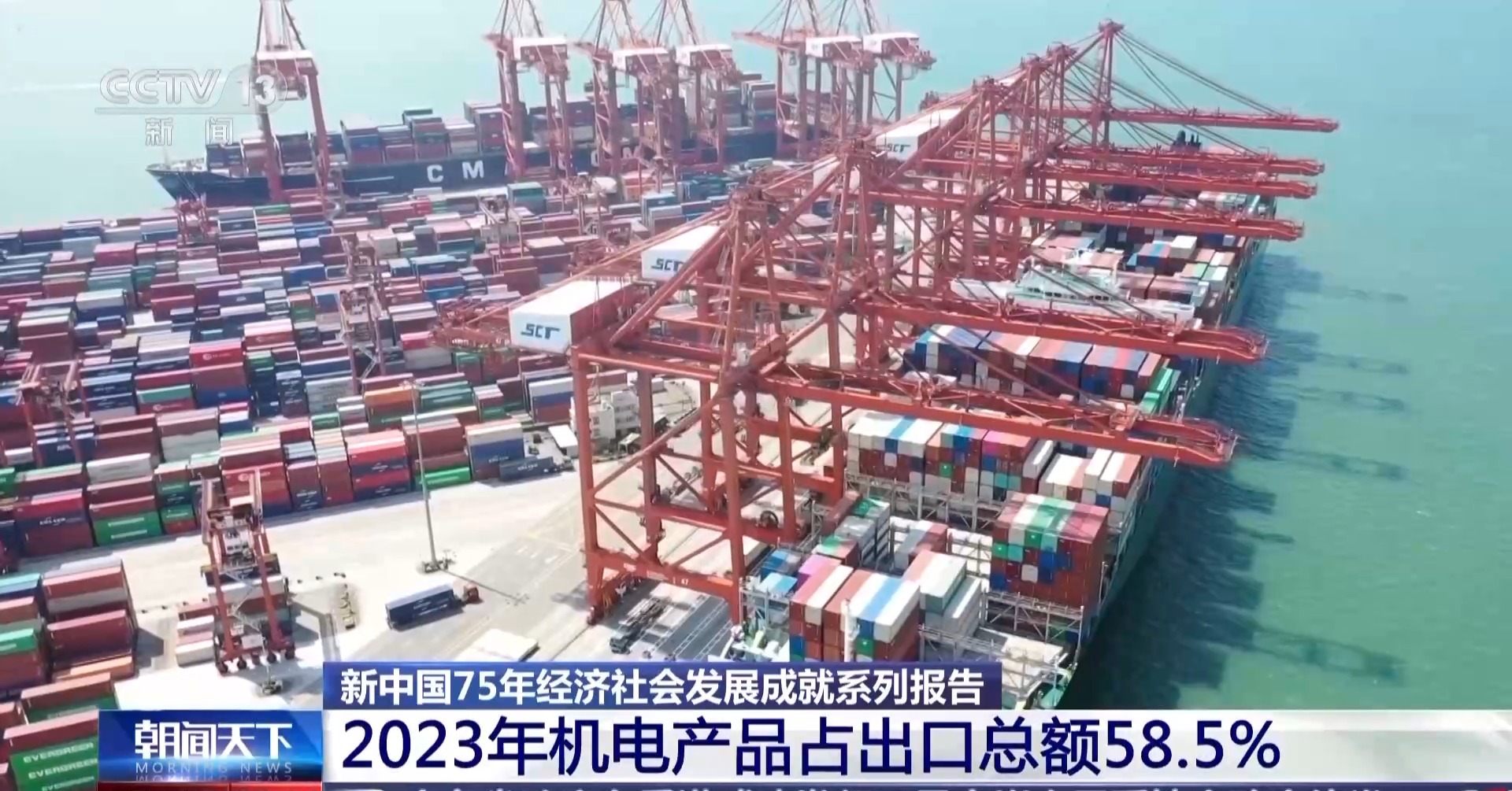 2023年,機電產(chǎn)品在出口總額中占比達(dá)58.5%,其中,汽車出口522萬輛,我國首次成為全球第一大汽車出口國。