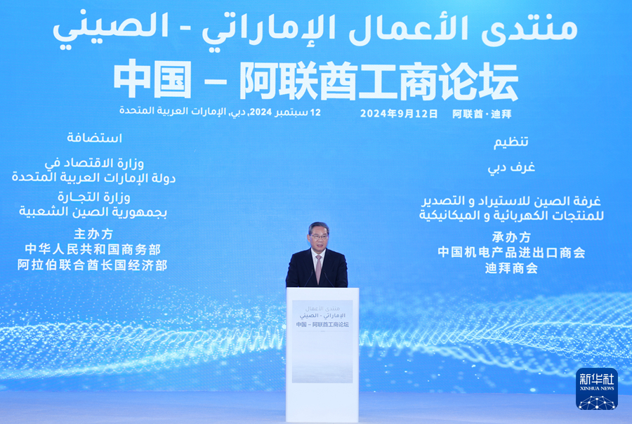 當?shù)貢r間9月12日下午,國務院總理李強在迪拜出席中國-阿聯(lián)酋工商論壇并致辭。