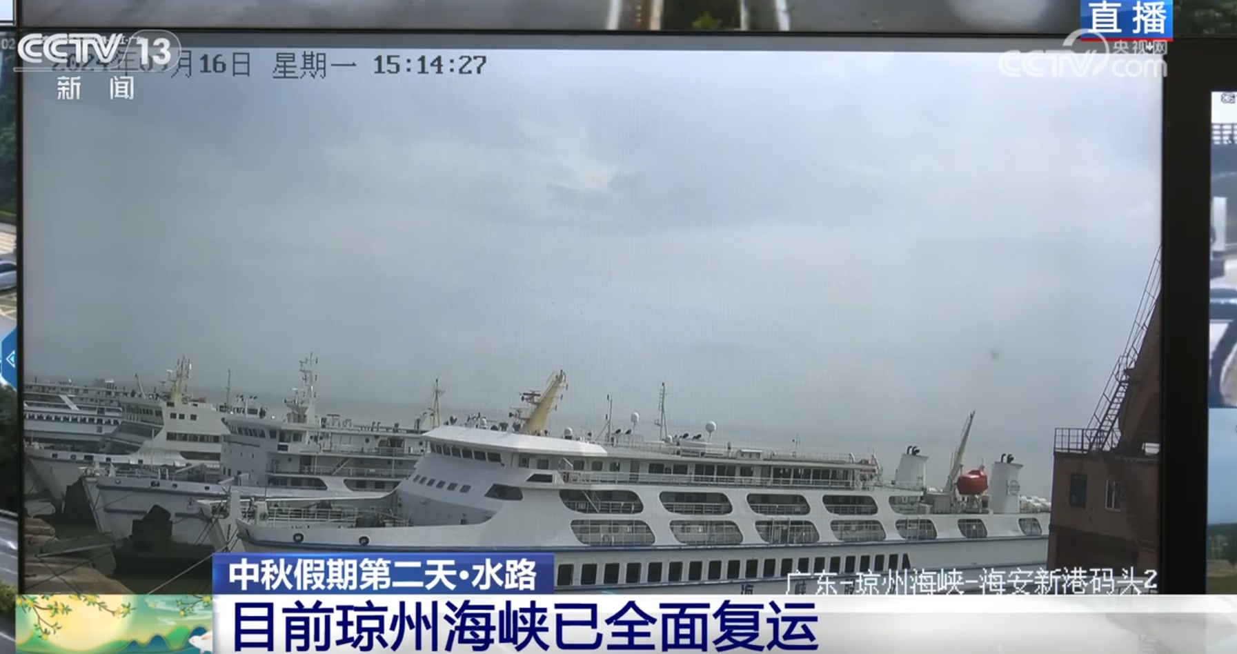 接下來看到的是瓊州海峽??谛潞8劭蜐L運(yùn)輸裝載現(xiàn)場的畫面,目前車輛和人員正在有序排隊(duì)上船。臺(tái)風(fēng)“摩羯”過后,在海事、客滾運(yùn)輸企業(yè)等多方共同努力下,目前瓊州海峽客滾運(yùn)輸航線已全面復(fù)運(yùn),運(yùn)力充足。海南海事部門已開啟客滾船專項(xiàng)安檢活動(dòng),并且強(qiáng)化船舶現(xiàn)場監(jiān)督檢查,防范船舶“帶病”營運(yùn),全力保障中秋假期重點(diǎn)時(shí)段瓊州海峽水上安全形勢平穩(wěn)。