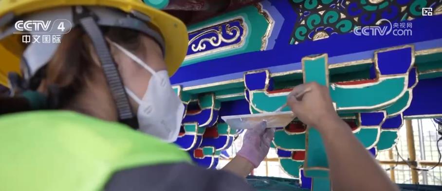 如今的北京中軸線構(gòu)建起了現(xiàn)代都市與歷史空間巧妙融合的城市景觀。北京中軸線上的前門五牌樓曾因常年風吹日曬,導致油飾層開裂、失去華彩。2022年,古建油飾彩畫專家堅持古法彩繪,對前門五牌樓進行了翻新,令牌樓呈現(xiàn)出恢弘大氣的視覺效果。作為世界遺產(chǎn)的北京中軸線同時也是百姓日常工作生活的場景,這讓北京中軸線成為了“活遺產(chǎn)”。而在北京中軸線的最南端,重新復建的永定門如今已經(jīng)成為了百姓休閑和游客打卡的好去處。