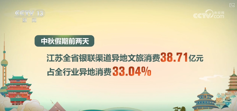 中秋假期,江蘇受到臺風(fēng)“貝碧嘉”過境的襲擾。據(jù)江蘇智慧文旅平臺監(jiān)測,中秋假期(9月15日0時至17日16時),全省納入監(jiān)測的639家A級旅游景區(qū)、195個省級以上鄉(xiāng)村旅游重點村、45家省級以上夜間文旅消費集聚區(qū)和84家博物館共接待游客610.03萬人次。中秋假期前兩天,江蘇全省銀聯(lián)渠道異地文旅消費38.71億元,占全行業(yè)異地消費33.04%。