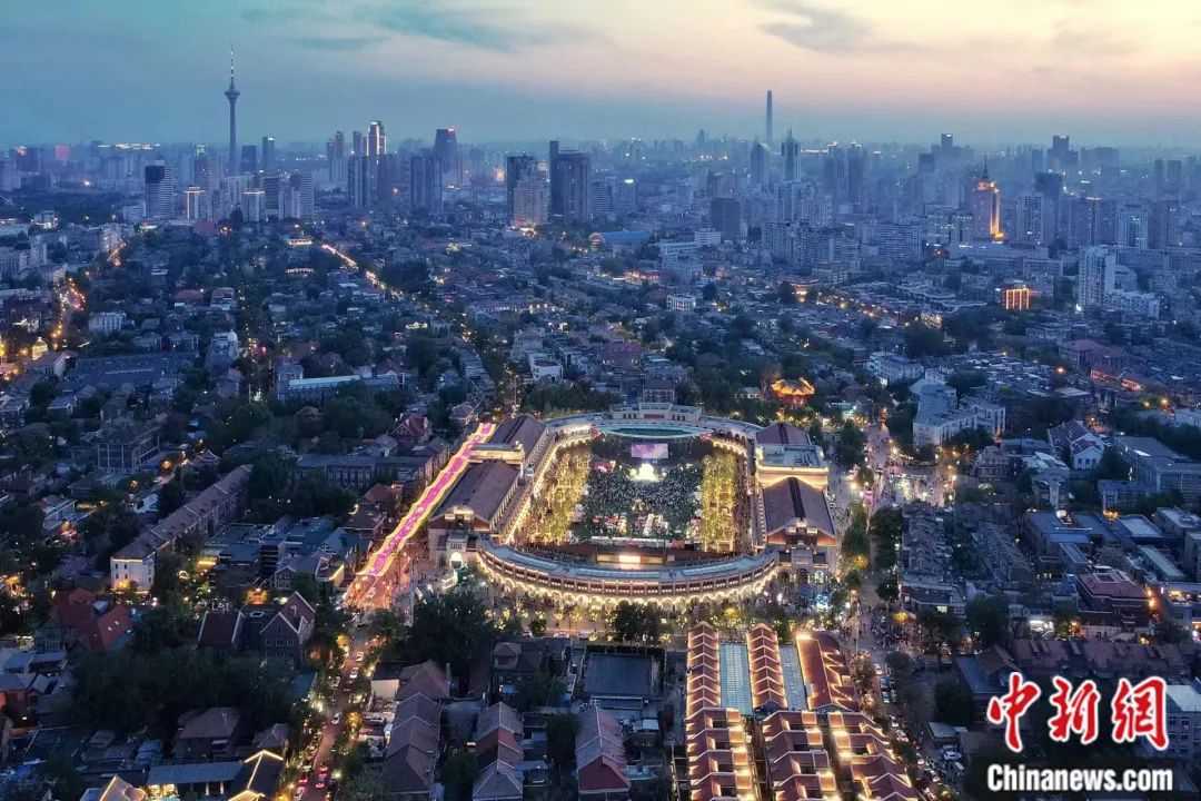 8月2日晚,由天津市商務(wù)局、天津市文化和旅游局、天津市體育局共同主辦的第五屆天津夜生活節(jié)啟幕。圖為民眾在啟動儀式上觀看文藝演出。中新社記者 佟郁 攝