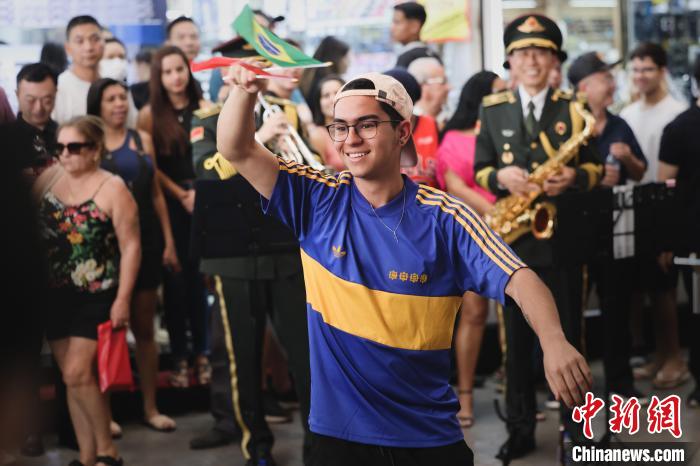 當(dāng)《巴西水彩畫》《依帕內(nèi)瑪?shù)呐ⅰ返劝臀鳟?dāng)?shù)囟炷茉數(shù)臉非懫饡r,現(xiàn)場氛圍掀起一個高潮,熱情奔放的巴西民眾紛紛走進“舞臺”中央,跟著節(jié)奏扭起了巴西特色的桑巴舞,還有人情不自禁地哼起了歌曲。