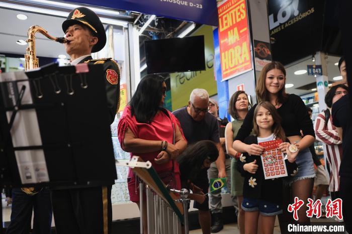 當(dāng)?shù)貢r間9月21日,巴西首都巴西利亞,參加中國軍事文化周活動的中國人民解放軍軍樂團演出分隊,在巴西利亞小商品市場演出,民眾互動熱烈。琚振華 攝