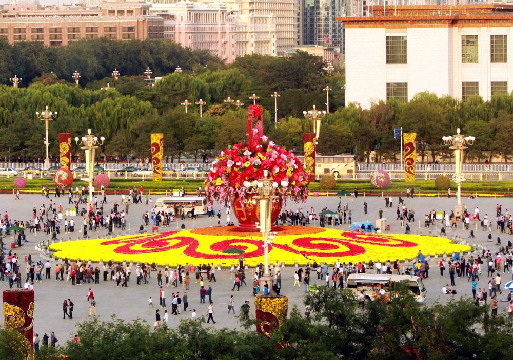 時間撥回1984年,天安門廣場頭一次出現(xiàn)花壇,當(dāng)時僅以擺放花帶、花堆的平面形式呈現(xiàn),花色相對單調(diào)。1986年國慶節(jié),名為“孔雀開屏,龍的傳人”的花壇亮相天安門廣場,這是首次嘗試搭建立體花壇。隨著改革開放的不斷深入,我國發(fā)展日新月異,國慶花壇也隨之蝶變,2008年時,近10米的傳統(tǒng)宮燈造型花壇現(xiàn)身天安門廣場,造型逐漸凸顯立體感、層次感。