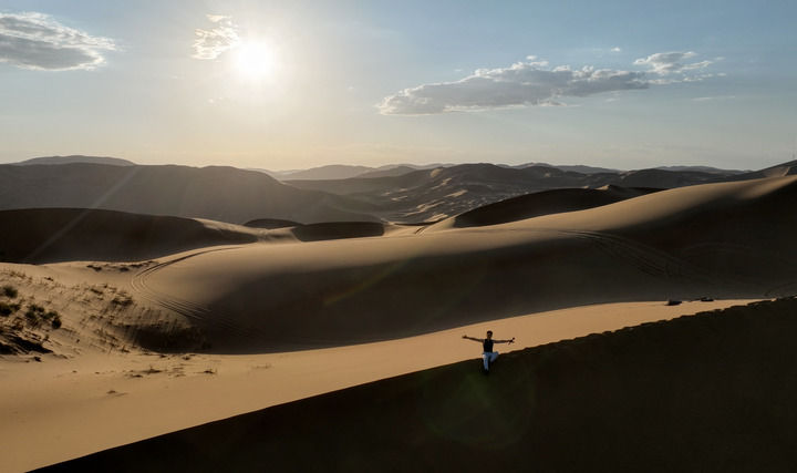 巴丹吉林沙漠的魅力,讓領(lǐng)略過的人意猶未盡、魂牽夢繞。德國探險家布魯諾·鮑曼于1994年首次徒步穿越巴丹吉林,從此與這片沙漠結(jié)下不解之緣。在過去30多年中,他多次來到巴丹吉林,用文字和鏡頭記錄這里的神秘風(fēng)貌,并出版了《我的世界 沙漠之旅》一書。“巴丹吉林沙漠是地球上最迷人的地方之一,我計劃明年再次來這里進行駱駝之旅?!滨U曼說。