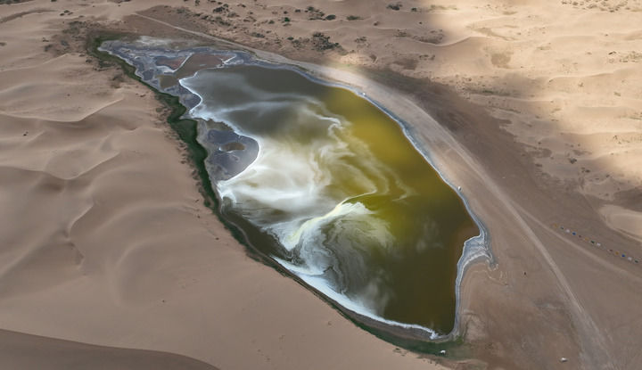 2024年7月31日拍攝的巴丹吉林沙漠中的南海子(無人機照片)。