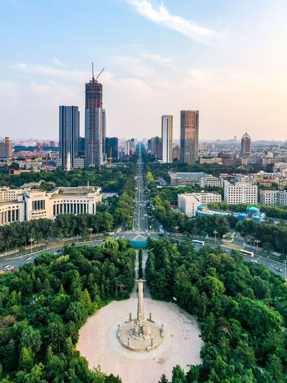 長春市人民廣場及人民大街(無人機照片)。新華社記者 許暢 攝